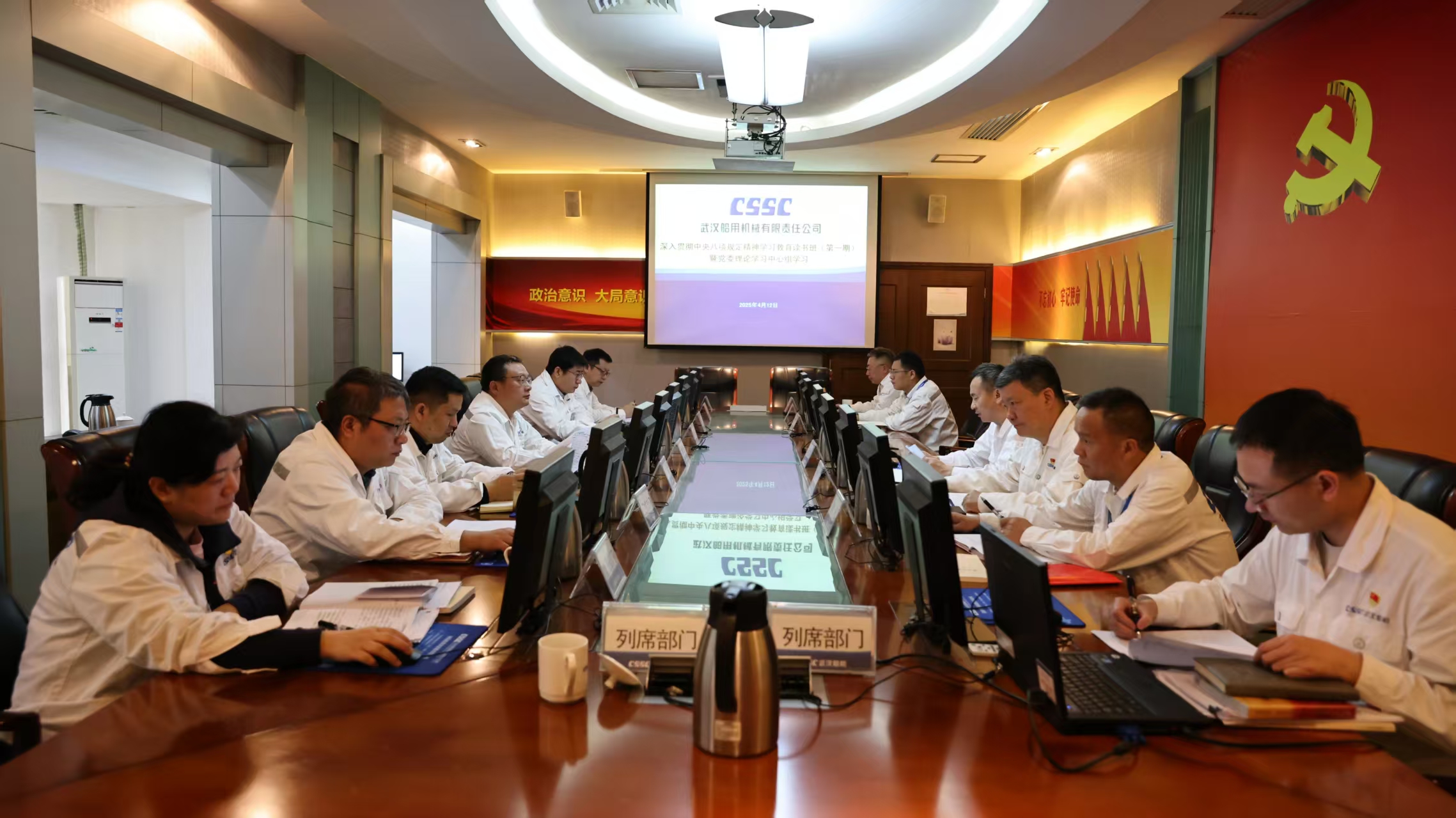 4月12日,中船集團(tuán)武漢船機(jī)黨委召開深入貫徹中央八項規(guī)定精神學(xué)習(xí)教育讀書班(第一期)暨黨委理論學(xué)習(xí)中心組學(xué)習(xí)會議。公司黨委理論中心組成員參加學(xué)習(xí)研討,公司黨委副書記、總經(jīng)理程立兵主持讀書班并進(jìn)行領(lǐng)學(xué)。